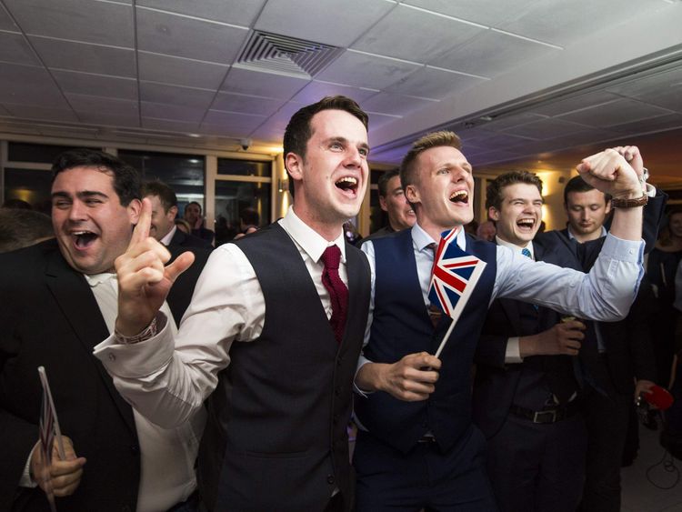 Image:Supporters of the Leave campaign celebrate after the referendum result in June 2016"This doesn't say we worked with them. This document says that we might be working with them. And that was the case, we did have a number of discussions with them.